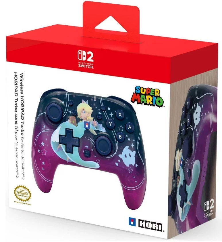 Egyesítse erőit Rosalinával és Lumával a HORI Wireless HORIPAD Turbo Nintendo Switch 2-höz (Universe Rosalina) vezeték nélküli kontrollerrel! Ez az áttetsző ergonomikus kontroller funkciók széles skáláját kínálja: precíz és tartós TMR karok a sima analóg mozgáshoz; HORI gomb a Turbo és Assign funkciók egyszerű aktiválásához vagy két egyéni gombprofil közötti váltáshoz; programozható hátsó gombok az Ön által választott funkciókkal; gombzár a véletlen bemenetek ellen; giroszkóp és gyorsulásmérő a kontroller mozgásának és dőlésének érzékeléséhez a még nagyobb játékélményért; vezeték nélküli hatótávolság akár 10 m és akkumulátor-üzemidő akár 10 óra (a csatlakozási és töltési idő változhat). Kompatibilis a Nintendo Switch 2, Nintendo Switch, Nintendo Switch – OLED Model és Nintendo Switch Lite konzolokkal.